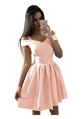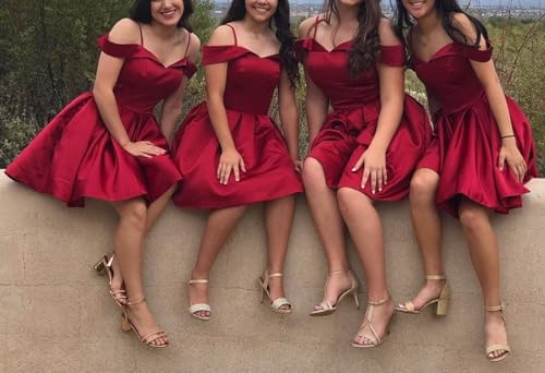 A-line Ruched Satin Homecoming Dress for Women, Short Sweetheart Off The Shoulder Cocktail Dresses Prom Dresses 6