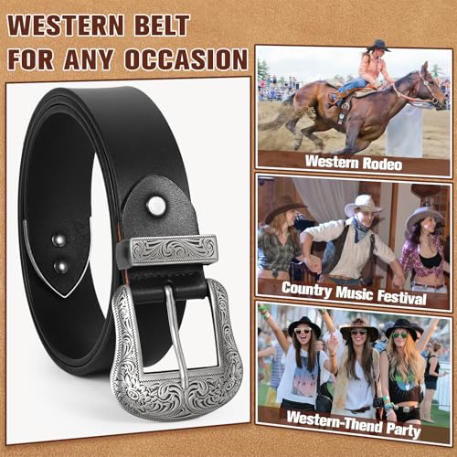 • Versatile Matching: This western belts for woman and men can be paired with jeans, dresses, suits, and other clothing, and can also be used as an accessory for oversized tops. The classic black western belt with a vintage silver/gold buckle can be easily paired with your cowboy boots to create any fashionable look.
