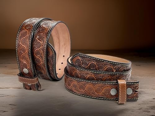 Western Leather Belt for Men Women Full Grain One Piece Leather Cowboy Belt Handmade Engraved Tooled 1.5” Wide 5
