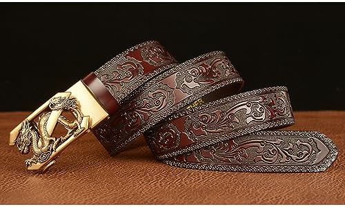 HOT ! Vintage Men's Genuine Leather Ratchet Belt with Dragon Slide Buckle,Western Cowboy Leather Engraved Belt