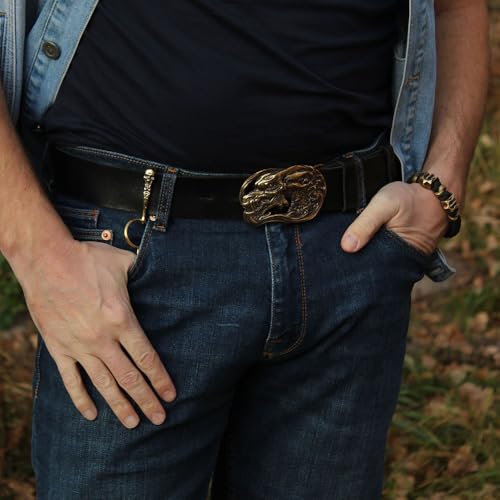 Leather belt with belt buckle Dragons Head, Handmade Jormungandr head solid brass belt buckle on leather belt 1