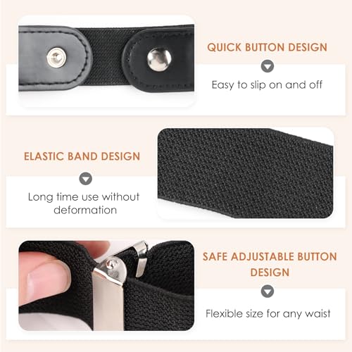 2 Pack Side Loop No Buckle Elastic Belt for Women & Men, Adjustable Invisible Waist Belt System with Dual Loop Design for Jeans & Pants, Fits 1.4" Innovative Belt Loops Universal Size Black 5