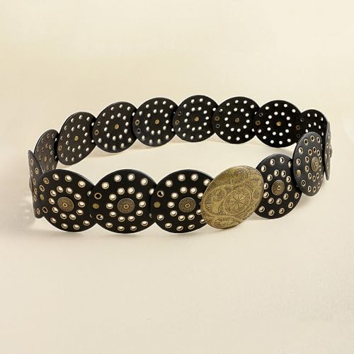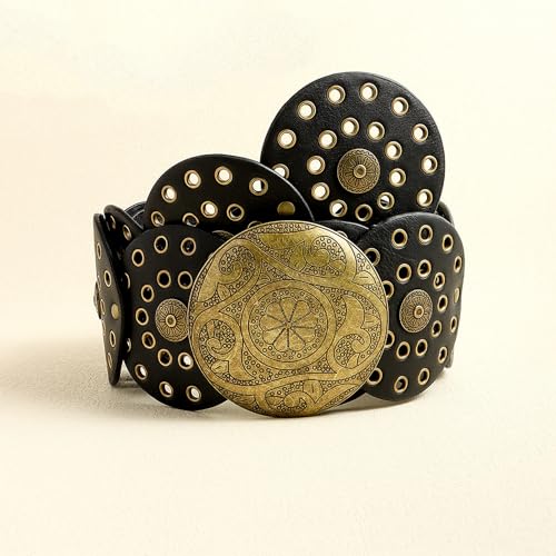 More information about Hollow Disc Belt Western Wide Boho Disc Concho Leather Belt Vintage Wide Waist Belt Cowboy Wide Disc Belt Metal Buckle