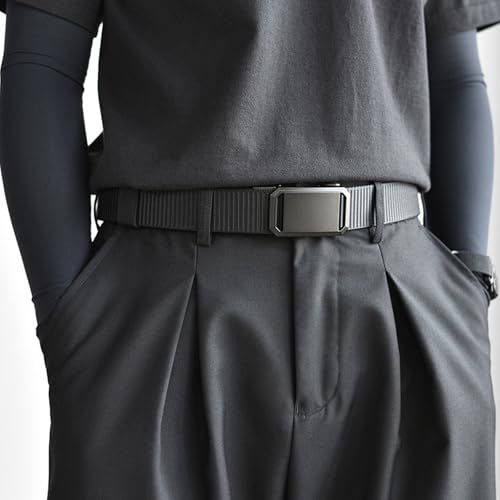 • Automatic Ratchet Web Belt Men: This Mens belt adopts ratchet design,just slide the belt into the belt buckle,the belt men buckle will automatically lock the belt,plug and play,when you take it off, you only need to click the button on the buckle head,you can easily take off the belt,very convenient.