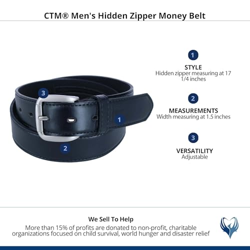 More information about CTM Men's Hidden Zipper Money Belt, Medium, Black