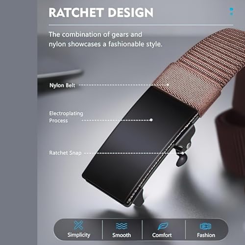 Men's Ratchet Web Belt,1.25 inch Nylon Automatic Buckle Belt,No Holes Invisible Belt for Men 3