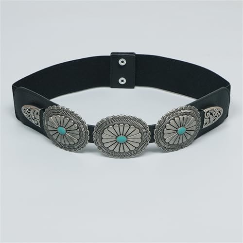 Versatile Carved Turquoise Buckle Waist Corset Women Girls Coat Dress Belt Shinning Waist Elastic Thin Belt 5