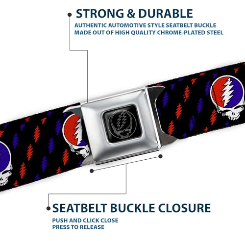 Grateful Dead Seatbelt Buckle Belt, Steal Your Face Mini Lightning Bolt 5