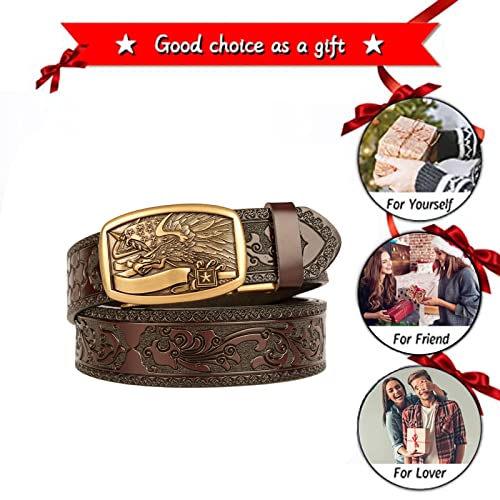 More information about Men Western Cowboy Leather Ratchet Dress Belts,Embossed Belt with Automatic Click Buckle Gold Eagle Head Flag Carved (110cm/waist:36"~38", Brown)