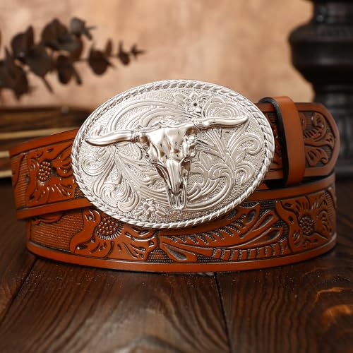 • [Durable Silver Buckle] The oval-shaped buckle with floral engraving resists tarnishing while providing secure closure The substantial weight adds to the belt's authentic western feel