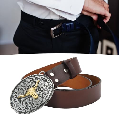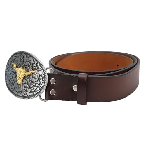 plplaaoo Western Cowboy Belt for Men Leather Adjustable Retro Vintage Bull Pattern Casual Buckle for Everyday 7