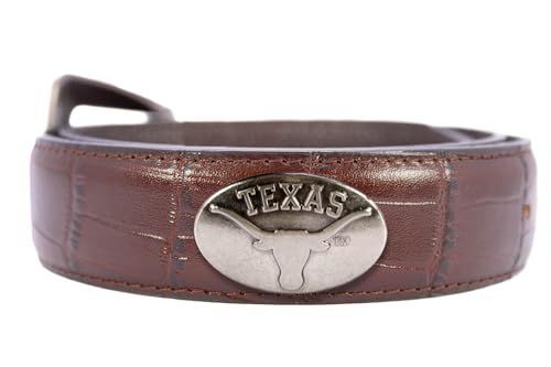 HOT ! ZEP-PRO NCAA Texas Longhorns Men's Croc Leather Belt – Embossed Full Grain Brown Strap With Emblem Conchos – 1.25" Wide Collegiate Accessory With Silver Tip, Size 44