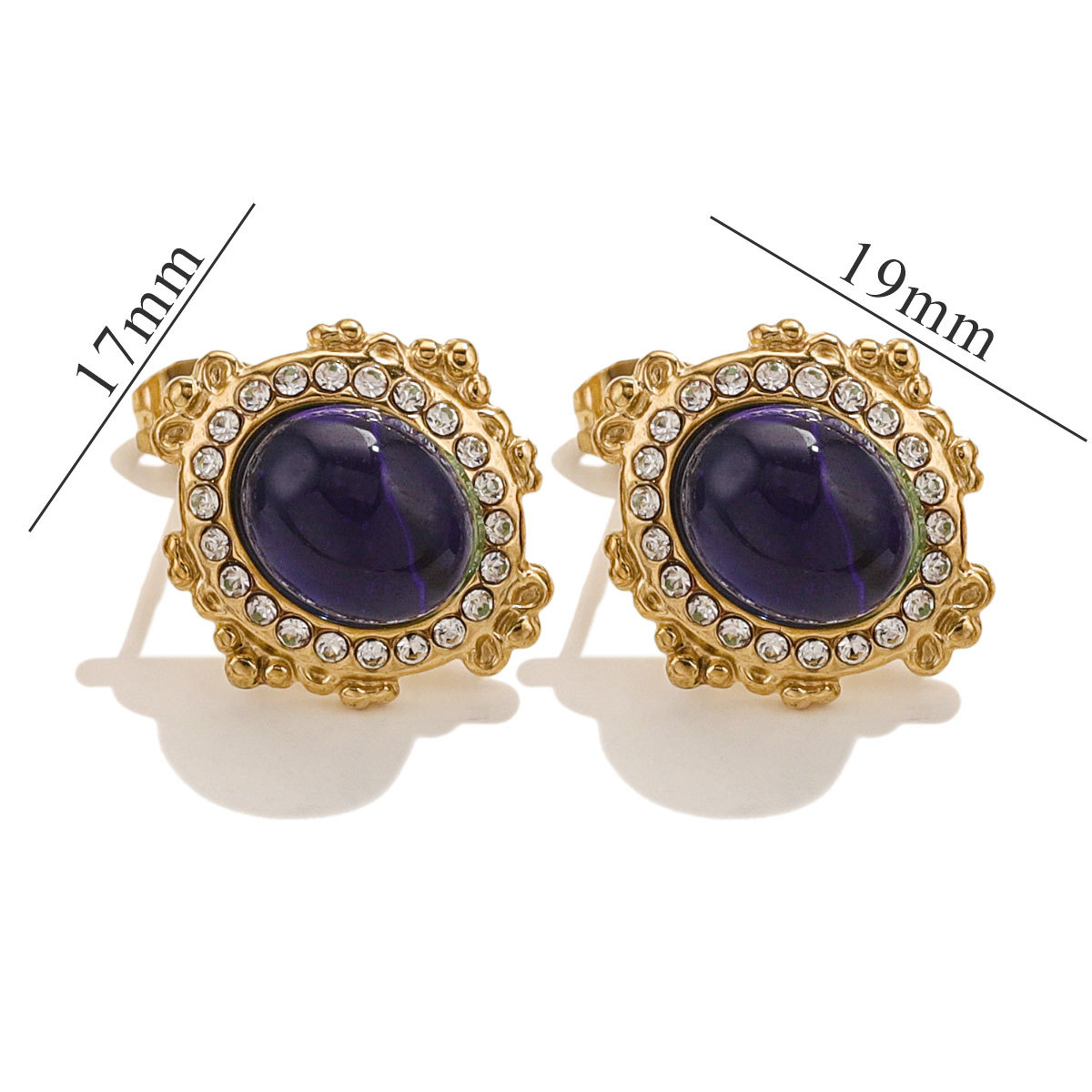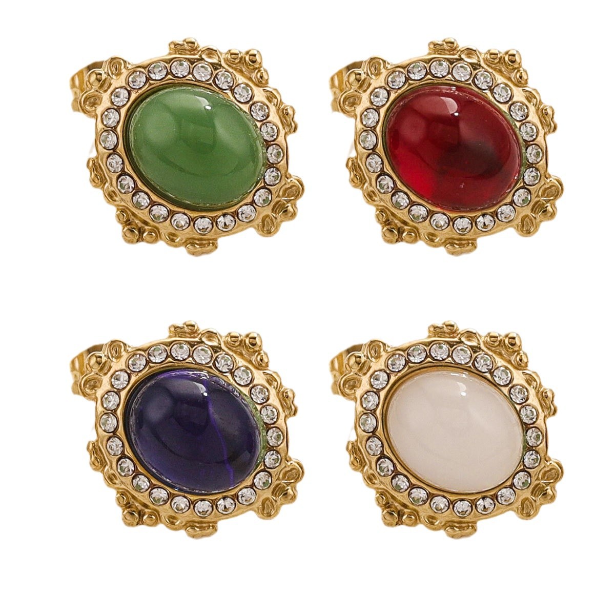 More information about Vintage Colorful Stone Stud Earrings Stainless Steel Women's Earrings Gold Plated Jewelry Aesthetic Wedding Gift
