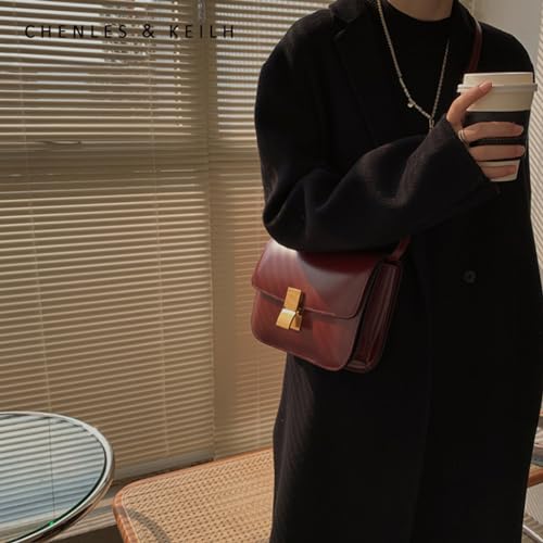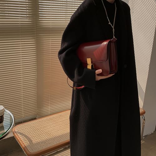 Small Crossbody Bag for Women, PU Leather Crossbody Purse, Fall Red Purse, Slouchy Bag, Suqare Satchel Bag, Adjustable Strap 1