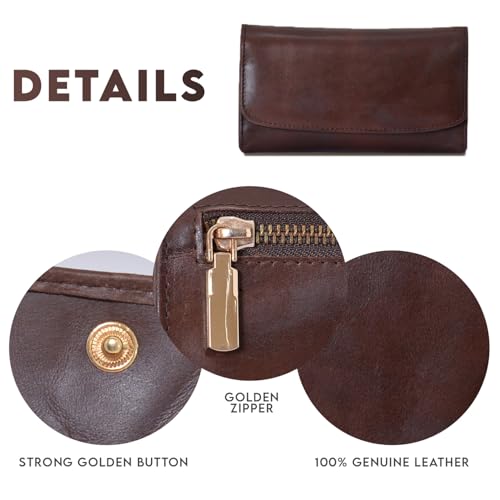 • [Spacious Yet Compact] - Prioritize convenience and organization with our women leather wallet. No more worries about misplacing cards or leaving your change behind. This brown women wallet streamlines your life with multiple card slots, cash compartments, and a separate phone compartment, guaranteeing you never forget anything important. It also features an external zipper pocket for coins and small makeup items