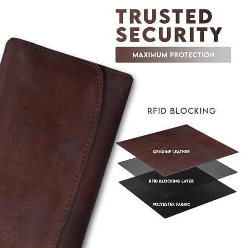 HOT ! Genuine Leather Wallets for Women 2024 RFID Blocking Ladies Large Trifold Slim Clutch Brown Wallet for Women - 13 Card Slots, 4 Cash Slots - Fits iPhone 14