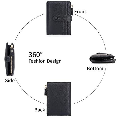 HKCLUF Small Wallets for Women,RFID Blocking Bifold Wallet For Women PU Leather Card Holder Zipper Coin Pocket with ID Window(Black) 5
