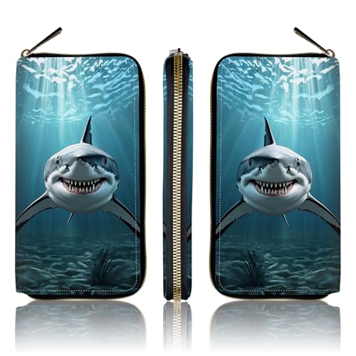 HOT ! Women's Wallets,PU Leather Wristlet Wallet for Women,Card Holder Organizer Ladies Clutch with Zipper & Phone Holder-Shark