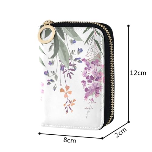HOT ! susiyo Flowers and Herbs on White Background Credit Card Wallet for Ladies, Zipper Card Cases Holder for Women, Women's Leather Wallet Coin Purse