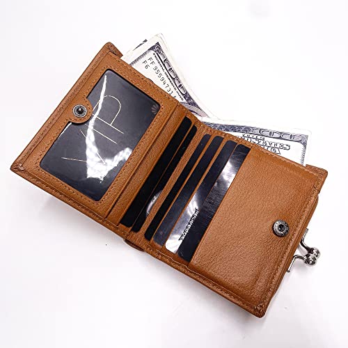 HOT ! Top Grain Leather Wallet for Women, Small Bifold Womens Wallet Purse with Kiss Lock Closure Coin Pocket and ID Credit Card Holder