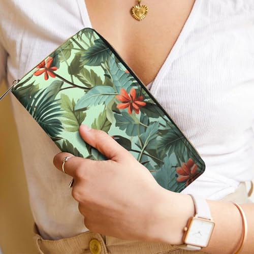 Womens Leather Wallets Tropical Plants Wallet for Women Large Capacity Card Phone Holder Ladies Purse 1