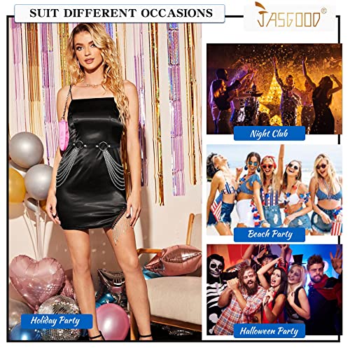 JASGOOD Punk Waist Chain Belt Black Leather Layered Belly Body Waist Chains Nightclub Rave Body Chain Belt for Women Girls 4