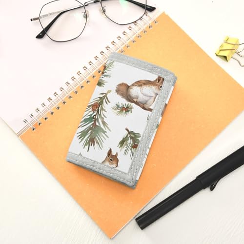 HOT ! ALAZA Kids Wallets for Boys Girls Toddler Trifold Wallet Children Small Squirrels Fir Branches with Zipper Coin Pocket