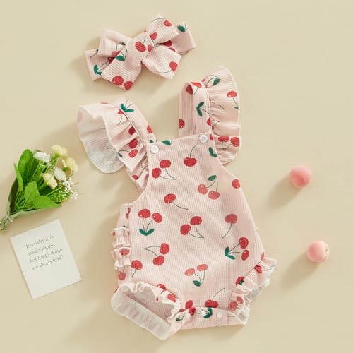 • Comfy Square Neck, Cute Flower and Fruit and Animal Printed, Ruffle Cross Straps, Ruffle Butt Design, Super Cute Summer Sleeveless Ruffled Boho Flutter Overall Romper One Piece Short Overalls Clothes Outfits with Headband 2 Piece Sets