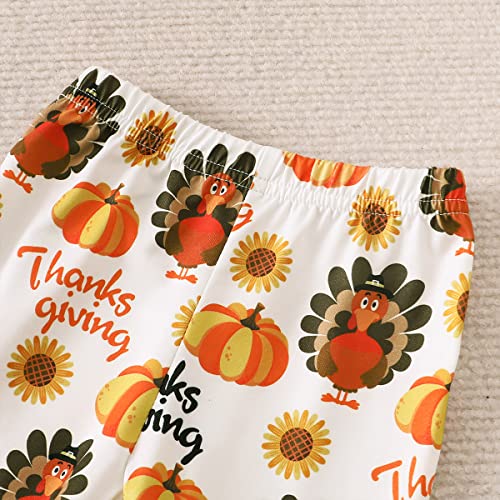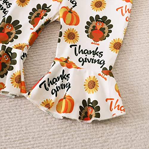 Shalofer Baby Girl My First Thanksgiving Outfit - Turkey Bodysuit and Flared Pants Clothes Set 4