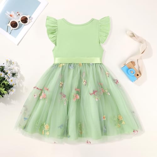 Toddler Girls Baby Tutu Tulle Dress Ruffled Sleeve Embroidered Floral Princess Party Dresses Summer Clothes 2-7Y 3
