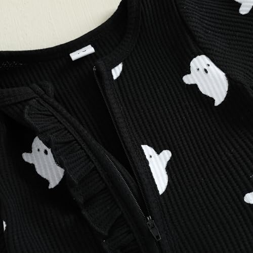 Newborn Baby Girl Halloween Outfit Ghost Print Ruffled Zipper Long Sleeve Romper Jumpsuit Infant Fall Clothes Headband 6