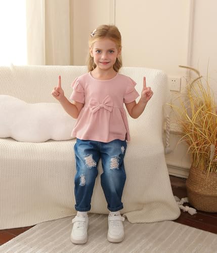 • Fashion Design: Our baby girl summer outfits is designed with a crew-neck short sleeve ruffle T-shirts and stylish ripped jeans that will make your little girls look cool.