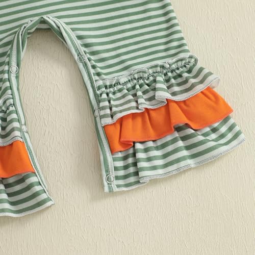 Newborn Baby Girl Halloween Outfit Pumpkin Romper Striped Bell Bottom Flare Jumpsuit Infant Halloween Clothes 5
