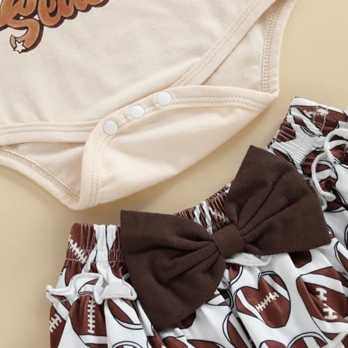 • SIZE: 4Pcs infant newborn baby girl football outfit letter print long sleeve romper top football print shorts headband set, suit for 0-3 Months 3-6 Months 6-12 Months 12-18 Months. Newborn 0-3 months baby girl game day outfit, baby girl outfits 3-6 months fall, infant 6-12 months fall clothes girls, newborn girl clothes 12-18 months baby girl sports outfit