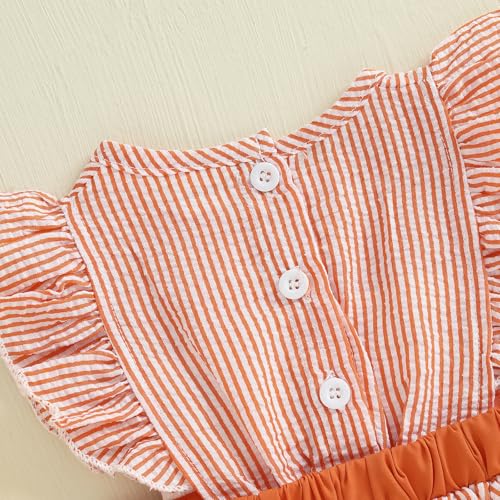 Kayotuas Baby Girl Summer Clothes Cute Smocked Bubble Romper Fly Sleeve Ruffled Doll Collar Letter Embroidery Bodysuit Dress 7