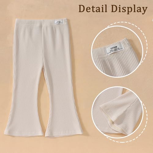 IZYJOY Kids Baby Girl Ribbed Knit Bell Bottoms Solid Color Flared Pants Toddler Elastic Waist Ruffle Leggings Fall Clothes 4