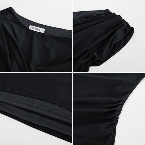 GRACE KARIN One Shoulder Summer Tops for Women Ruched Batwing Asymmetrical Tops Dressy Casual Party Shirts 5