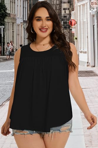 • Design: Plus size tanks, crew neck tank tops, losse fitting tops, sleeveless shirts with a round neck design and a pleated collar. The pleated design enhances the visual appeal can hide the stomach and waist for any body type