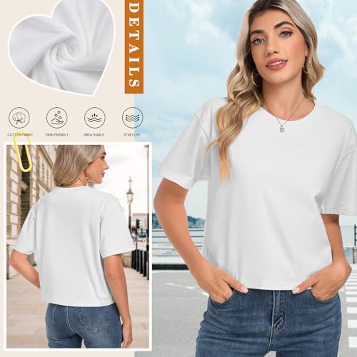 HOTIAN 100% Cotton T Shirts for Women Oversized Workout Cropped Tops Short Sleeve Crew Neck Casual Loose Tees 4