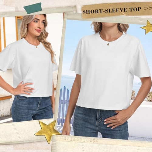 HOTIAN 100% Cotton T Shirts for Women Oversized Workout Cropped Tops Short Sleeve Crew Neck Casual Loose Tees 2