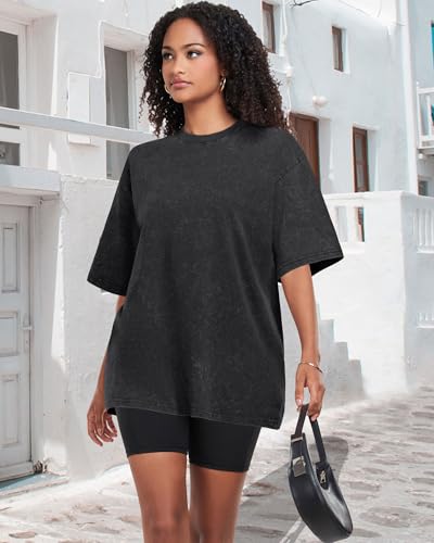Oversized Tshirts for Women Short Sleeve Crew Neck Vintage Washed Basic Loose Casual Tees 6