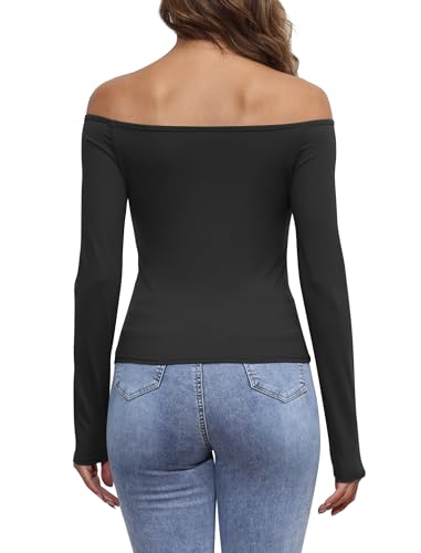 Womens Off The Shoulder Tops Long Sleeve Going Out Basic Shirts Cute Y2K Fall Trendy Fashion 2025 1