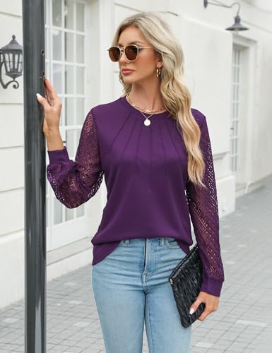• Feature: The blouses for women dressy casual feature crewneck, front pleated design, lace long sleeve with plaid pattern, providing a flattering and elegant look.