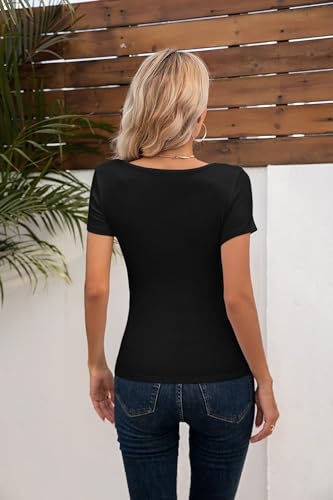 VICHYIE Womens Tops V Neck Summer Short Sleeve Casual Slim Fitted Tshirt 2