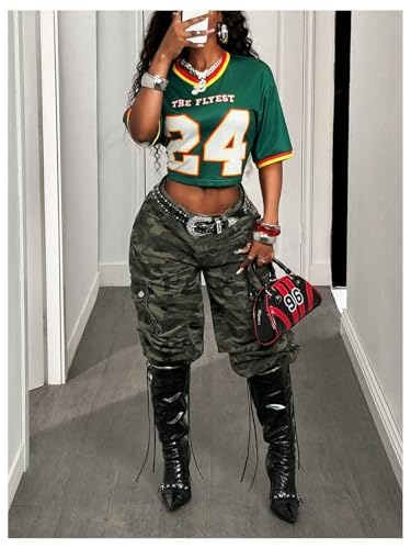 More information about Milumia Women's Crop Jersey Shirts Y2k Number Graphic V Neck Half Sleeve Mesh T Shirt Streetwear Tee Tops