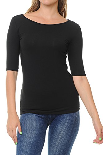 SSOULM Women's Basic Stretchy 1/2 Sleeve Crewneck Slim Fit T-Shirt Top with Plus Size 3