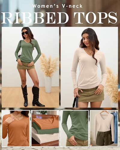 • Thoughtful Design: our womens v neck t shirts feature a deep v neck for an elegant silhouette and long sleeves for comfort; Ribbed fabric provides subtle warmth, and the slim fitting cut provides support without digging, combining warmth and good looks