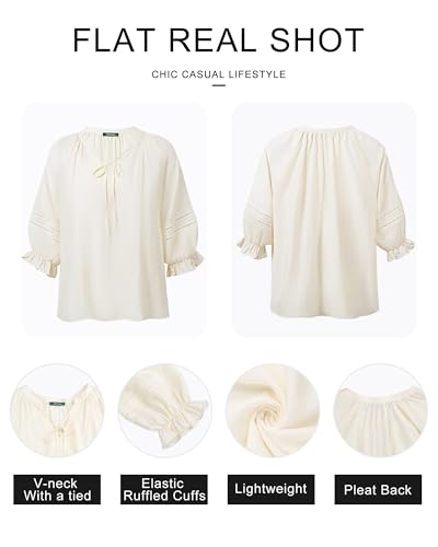 • DESIGN: Elegant boho blouses for women dressy casual. French-inspired romantic womens summer blouses with V-neck design, showing off charming and sexy collarbone. Ladies tops with front tie, you can tie or not. Womens blouse 3/4 sleeve with embroidery and stretch ruffle cuffs, womens flowy tops can trim arm well. Swing a-line womens tops dressy casual, effectively cover hips, trimming figure to enhance elegant
