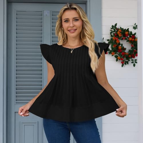 Women's Summer Blouse Ruffled Sleeves Pleated A Line Peplum Babydoll Shirt Top 2