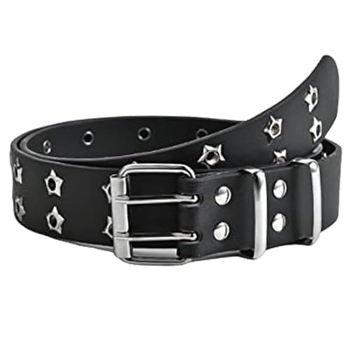 Y2k Belt Goth Belt Gothic Star Rivet Double Needle Buckle PU Leather Men's and Women's Jeans Fashion Thin Belts for Women ' Belts Fashion Accessories BlackY2k 2